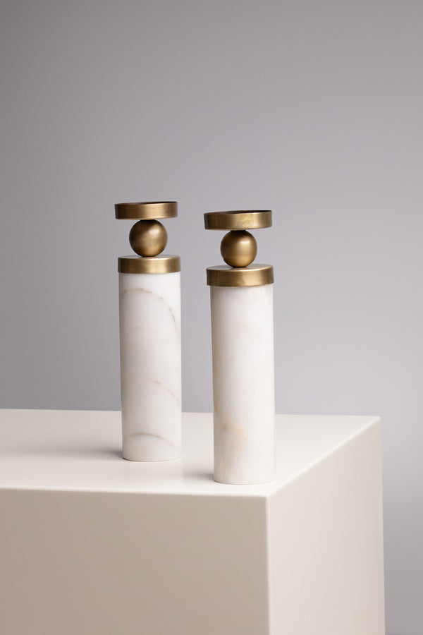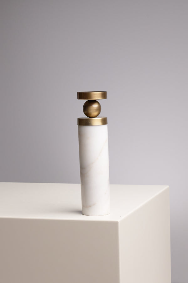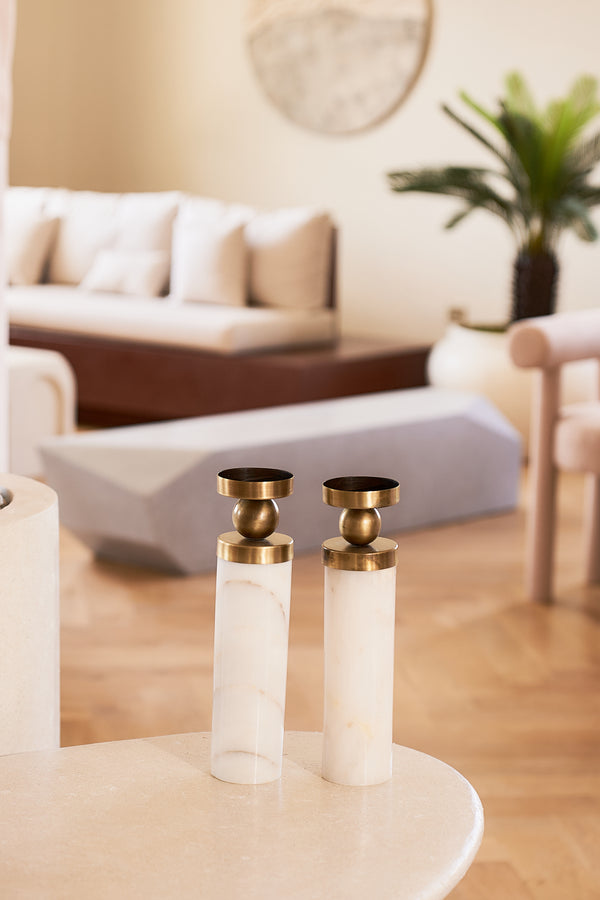 Deze kaarsenhouder, ontworpen met de elegantie en esthetiek van natuurlijk marmer, is een kunstwerk met zorgvuldig bewerkte details. Dit verfijnde stuk, dat uw moderne levensstijl weerspiegelt, biedt zowel esthetiek als functionaliteit, waardoor uw leefruimte specialer en uitnodigender wordt.