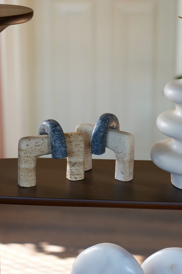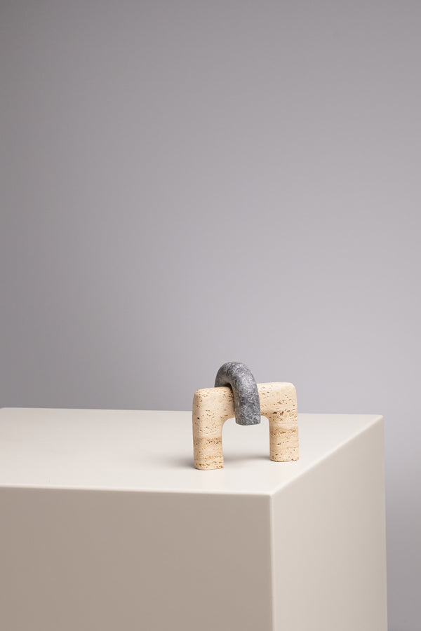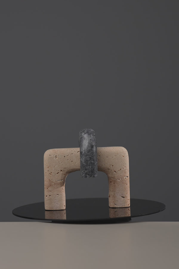 Dit unieke object biedt de esthetiek van natuursteen op het hoogste niveau door de elegante combinatie van antraciet en crème travertijn. De harmonie die ontstaat in de overgang tussen de twee materialen biedt een perfecte aanraking voor moderne en natuurlijke decoraties.