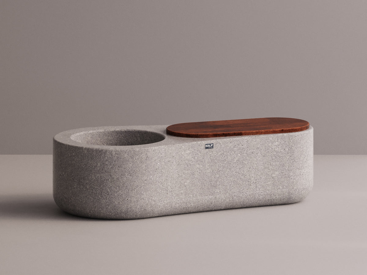 Asgard combines elegance and functionality with the harmonious combination of lightweight concrete and wood. This modern bench, with its integrated plant area, brings nature into indoor spaces, offering users a comfortable seating experience.