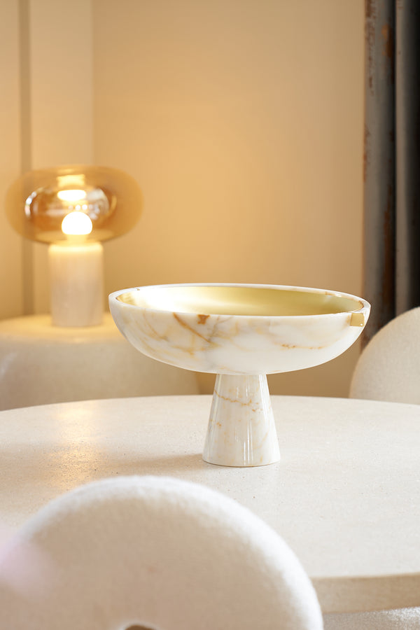 The elegant bowl combines modern and classic styles with the natural texture of marble and the finely crafted design of golden details, creating an aesthetic focal point in any space. The unique texture of marble, combined with the brilliance of gold accents, creates a captivating atmosphere.