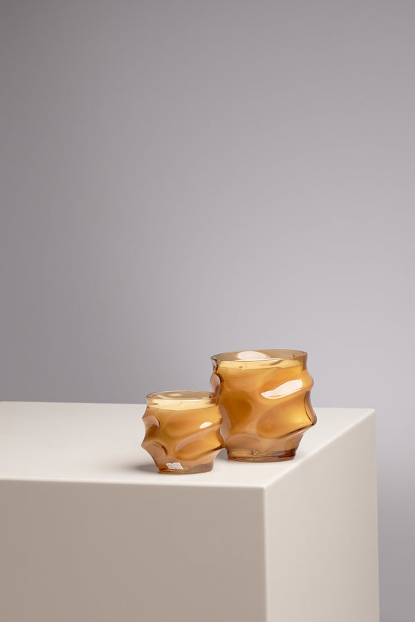 The elegant wave shape of the colored glass brings the soothing atmosphere of nature into your home. With its modern design and unique details, this candle holder adds sophistication and style to your living space. Standing out with its wave-shaped design, this candle holder not only brings the warmth of candlelight into your home but also offers a visually striking appearance.